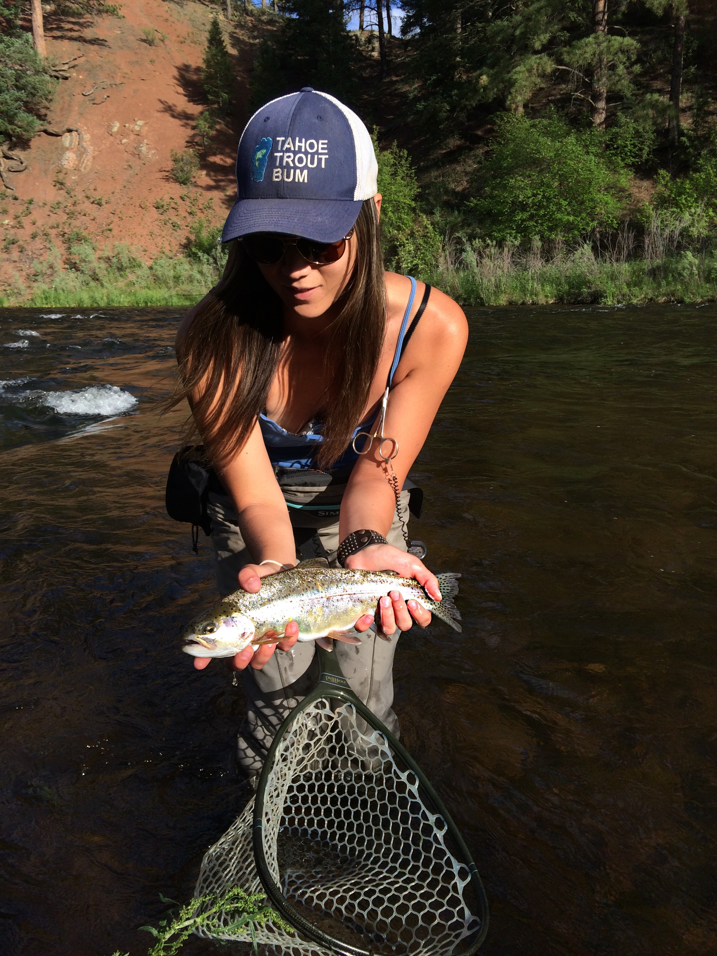 An hours drive out of Denver, Deckers, CO was much smaller than I had expected it to be when I’d looked at it on a map. I absolutely loved it. A place where cell phone reception doesn’t exist and there are 4 shops in town, one of them being a fly shop. After buying my Colorado fishing license and sharing fishing tales at Flies and Lies, I headed to find a campsite and fish. Whipping together my tent with the efficiency of an expert and haphazardly tossing together my bedding, camp was set and I was ready to fish within the hour. The flows were about 250% above optimal fishing levels, but word on the river was the nymphing was still productive. Typically, I like to drive and hike a bit to find fish that haven’t had every fly and the kitchen sink thrown at them, but the water by my campsite looked too good to pass up. I waded out in a few hundred feet from my tent and made a few casts. The river bed was a very yellow color, with lots of fine gravel. Despite keeping an eye out, I didn’t see any fish. Until I looked directly below my feet. I had two big rainbows following my wake just a few feet downstream. My pet fish. Avoiding the temptation to thrown on a San Juan Worm and fish by my feet, I continued to fish upstream, sans indicator. Frank and Ethel (Yup, I named my pet fish) kept me company until I caught my first fish by dead drifting a salmon fly nymph. They scattered as I landed the first rainbow of the trip; a fat well-fed 16 incher.     The rest of the afternoon went by with only one more fish caught, another similar sized rainbow in a riffle upstream from camp. As twilight crept over the canyon, I looked across a the river to a promising bend in the river. The water was too fast to wade out very far, and fishing from the other side wouldn’t give as good of a presentation; a conundrum to be sure. Unless you happen to have packed your spey rod, just in case. I jogged back to camp and set up my graceful 13 foot Anderson Custom spey rod. Second cast out, a few feet into the swing, I felt the familiar jolt lightening through my rod, waited a few beats to make sure the fish has eaten the fly, and then set the hook. Immediately I could tell this fish was bigger than the ones I had caught earlier in the day. My reel screamed like only a Hardy can as the line zipped off the spool. And a few minutes later I was netting a beautiful 21″ rainbow I caught on the swing. Not bad. I knew there was a reason to lug the Spey set up halfway across the country, despite a shortage of space in the car.     It just goes to show that when the fishing is a bit slow and the flows aren’t cooperating as much as you would like, there is always a way to productively fish a river. Fishing is a combination of knowledge, observation, skill and creativity. A bit of imagination and thinking outside the box can truly elevate your fishing experience to the next level.