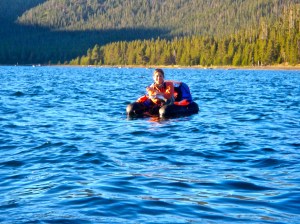 We camp right next to the lake, and I awake the next morning (hangover free) to the lovely sound of copious amounts of fish rising. Oh what a morning. I paddle out in my tube and catch another fish on a parachute adams; all before morning coffee. Dad joins me a bit later after the hatch and catches three good sized fish on a nymph set up. Can’t wait for the evening hatch tonight!